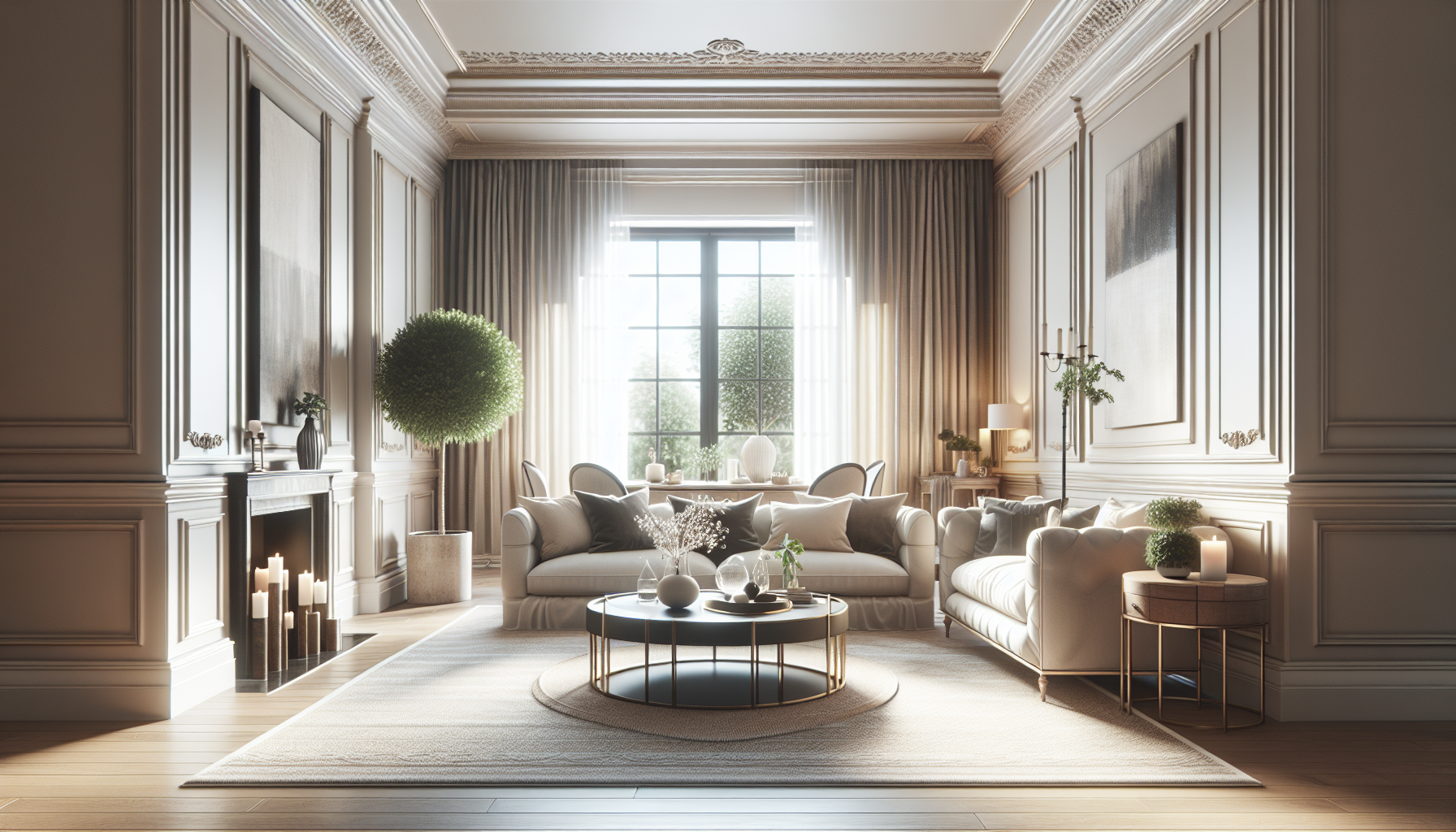 Szerokie listwy jako wyrazisty element dekoracyjny w salonie